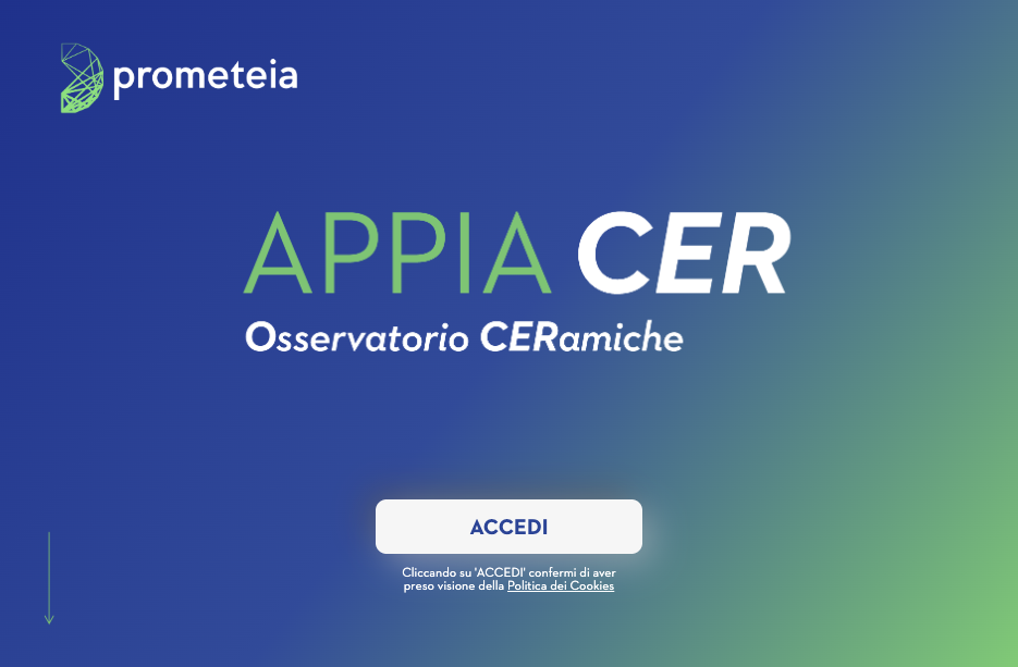 Sviluppato in collaborazione con Prometeia, questo strumento online mette a disposizione in formato interattivo i contenuti dell’Osservatorio Previsionale, frutto di oltre 30 anni di collaborazione tra Prometeia e Confindustria Ceramica. Il portale permette di consultare e scaricare gli analytics su oltre 60 paesi e aggregati.