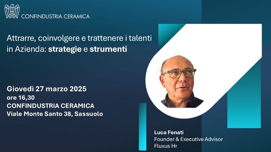 Vai alla lista eventi Evento Attrarre, coinvolgere e trattenere i talenti in Azienda: strategie e strumenti Education e Formazione Questo contenuto è riservato agli associati Accedi Informazioni Data 27 marzo 2025 Ora Dalle 16:30 alle 18:30 Luogo Confindustria Ceramica - viale Monte Santo 38, Sassuolo Partecipazione Riservato agli associati Allegati Luca Fenati.pdf