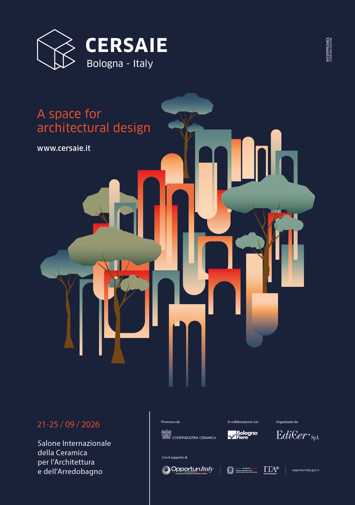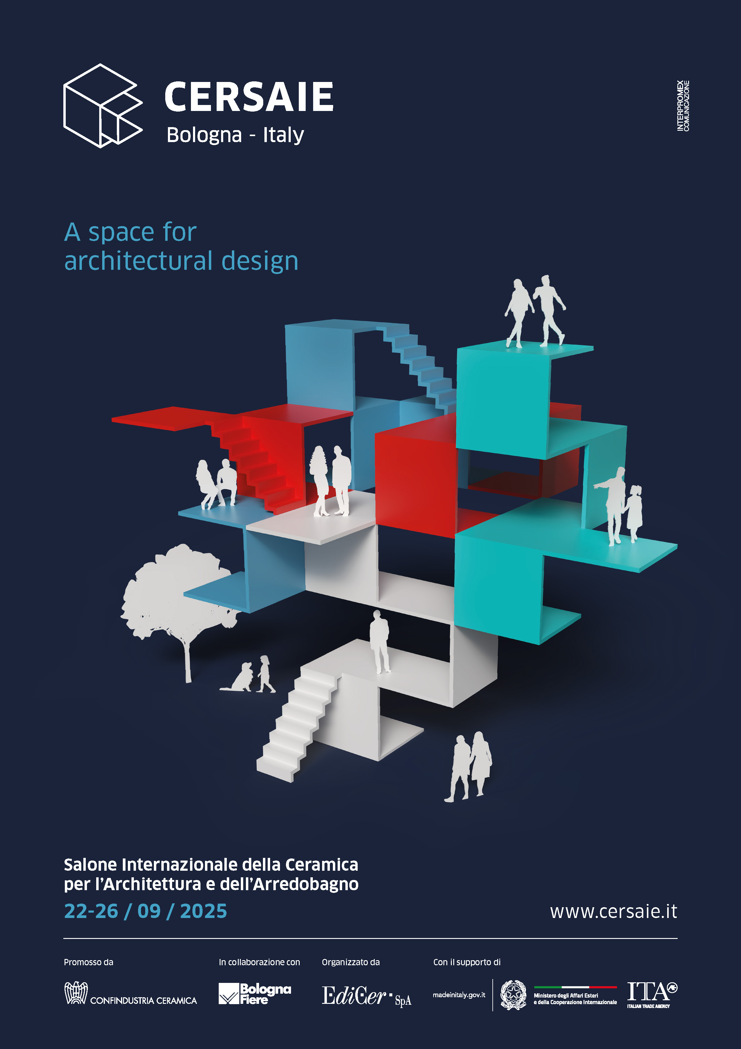 Cersaie 04 aprile 2024 CERSAIE è Il Salone Internazionale della Ceramica per l’architettura e l’arredo bagno, che da oltre 40 anni si svolge annualmente a Bologna. E’ tuttora la più importante fiera a livello mondiale della ceramica per l’architettura. Cersaie è promossa da Confindustria Ceramica e organizzata dalla controllata Edi.cer. Spa. Il Salone Internazionale della Ceramica per l’architettura e dell’Arredobagno presenta il Manifesto dell'edizione 2025 della fiera, che si terrà a Bologna dal 22 al 26 settembre. Il manifesto ideato per questa edizione è una narrazione grafica e concettuale dell'interazione tra l'essere umano e gli spazi architettonici, in cui il logo diventa un perimetro virtuale che offre innumerevoli prospettive e invita a esplorare e scoprire nuove visioni e ispirazioni. Il visual rappresenta quindi ciò che Cersaie offre ai propri visitatori: un ecosistema di prodotti di design che soddisfa appieno le esigenze di progettisti, contractors e operatori del trade di tutto il mondo. Le informazioni aggiornate su questa importante appuntamento si trovano al link https://www.cersaie.it/it/index.php Allegati Cersaie 2023 con dati finali.pdf Foto Immagine "0"
