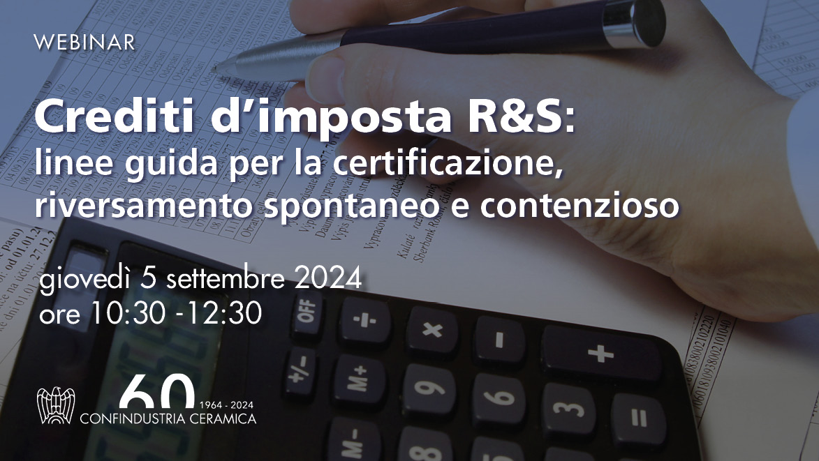Vai alla lista eventi Evento Crediti d’imposta Ricerca, Sviluppo e Innovazione: linee guida per la certificazione, riversamento spontaneo e contenzioso. Fisco, finanza e agevolazioni Materie: Fisco e tributi Agevolazioni fiscali Finanziamenti Questo contenuto è riservato agli associati Accedi Confindustria Ceramica, in collaborazione con KPMG-Studio Associato, ha organizzato un webinar dedicato alle novità sulla certificazione dei progetti di investimento in attività di R&S, innovazione e design nonché alla valutazione del ricorso alla procedura di riversamento del credito d’imposta. Informazioni Data 5 settembre 2024 Ora Dalle 10:30 alle 12:30 Luogo webinar Partecipazione Riservato agli associati Allegati Webinar_5sett2024.pdf Credito R&S - Certificazione e suoi effetti.pdf Credito R&S - contenzioso tributario.pdf Credito R&S - Linee guida ministeriali.pdf Credito R&S - sanatoria.pdf