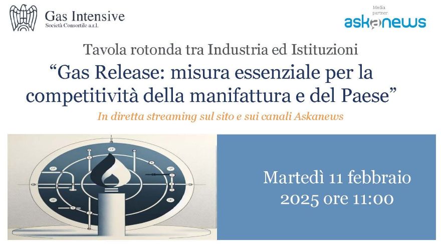 Vai alla lista eventi Evento Gas Release: misura essenziale per la competitività della manifattura e del Paese Energia Materia: Mercati energetici Gas Intensive organizza una tavola rotonda tra Industria ed Istituzioni per promuovere soluzioni alternative o complementari all’estrazione nazionale e rilanciare la misura per una sua rapida ed efficace attuazione. La gas release, da cui ci si aspettava la disponibilità di 2-3 miliardi di mc/a di gas nazionale a prezzi regolamentati, più convenienti rispetto a quelli di mercato, non è ancora stata attuata, nonostante ben 3 passaggi normativi. In un momento di difficoltà della manifattura italiana, chiamata a fronteggiare costi energetici notevolmente più alti di quelli dei competitors europei ed internazionali, Gas Intensive intende riaccendere il dibattito con le Istituzioni per individuare una soluzione alternativa all’estrazione nazionale e rilanciare la misura per una sua rapida ed efficace attuazione. Interverranno Aldo Chiarini (Gas Intensive), Federico Boschi (MASE), Augusto Ciarrocchi (Confindustria Ceramica), Lorenzo Poli (Assocarta), Massimo Noviello (Assovetro), Massimo Beccarello (Centro di Economie e Regolazione dei Servizi) e rappresentati di diverse parti politiche, come da programma allegato. Collegamento alla diretta streaming disponibile sui canali Askanews: • https://askanews.it/hp_test_diretta_video.html • https://www.youtube.com/watch?v=dQ11_JF-wv0 Informazioni Data 11 febbraio 2025 Ora Dalle 11:00 alle 12:30 Luogo diretta streaming Partecipazione Aperto a tutti Allegati Programma -Tavola rotonda GI - feb.25 1.pdf Link Sito Gas Intensive