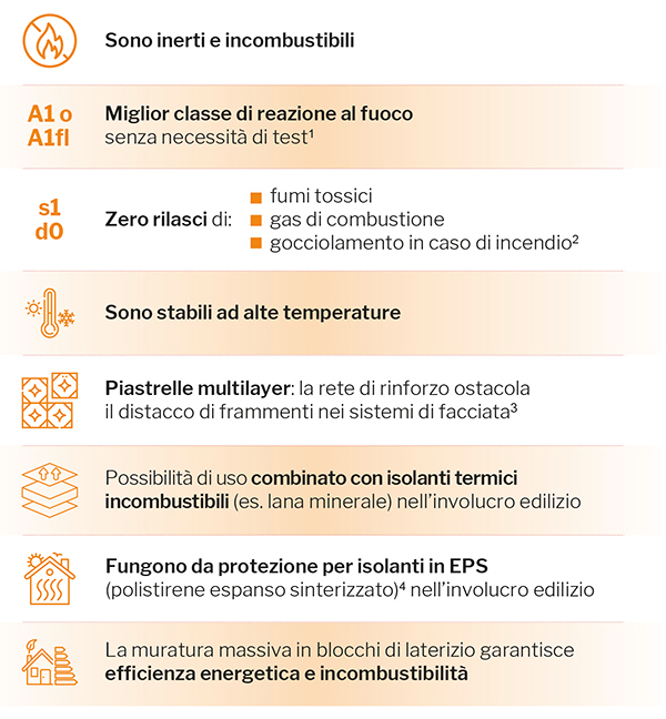 Vai alla lista notizie Notizie Materiali ceramici e prevenzione antincendio 10 ottobre 2025 Edilizia Salute e Sicurezza Materia: Prestazioni degli edifici Salva nei preferiti Perché scegliere i materiali ceramici Note (1) La Decisione 96/603/CE della Commissione Europea (inclusa nella norma armonizzata EN 14411), ha stabilito un elenco di prodotti, tra i quali rientrano anche i materiali ceramici, da considerare come aventi una classe di reazione al fuoco A1 (o A1fl) “Nessun contributo all'incendio” senza necessità di test (a condizione che la colla non superi lo 0,1 % in peso o in volume e che il materiale non contenga più dell'1,0% in peso o in volume di materiale organico omogeneamente distribuito). (2) La norma EN 13501-1 attesta che i materiali ceramici in caso di incendio non rilasciano fumi tossici (s1) e non producono gocce/particelle infuocate (d0). (3) Le piastrelle in ceramica multistrato sono composte da piastrelle in ceramica e da una rete di rinforzo in fibra di vetro. Test sperimentali hanno dimostrato che l'uso della rete di rinforzo ostacola il distacco e la caduta nelle grandi lastre ceramiche durante un evento di incendio. Le piastrelle ceramiche multistrato sono solitamente classificate come A2-s1, d0 o B-s1, d0 (4) L’abbinamento dell’EPS con prodotti ceramici assicura una soluzione complessiva in classe di reazione al fuoco B-s1-d0, altrimenti non ottenibile con l’applicazione dei soli isolanti polimerici in facciata. Reazione al fuoco: ceramica ed altri materiali da facciata5 a confronto I sistemi di facciata con rivestimenti in ceramica o terracotta e le soluzioni murarie massive in laterizio assicurano un’elevata sicurezza antincendio e possono migliorare l'efficienza energetica dell’edificio. Note (5) La presente tabella confronta la reazione al fuoco dei singoli materiali, non di sistemi o compositi. (6) La temperatura di ignizione è a circa 370° C. (7) In caso di incendio può emettere un fumo denso pericoloso per la respirazione, carico di sostanze tossiche (monossido di carbonio, acido cianidrico, …) e di CO2. (8) L’EPS inizia la sua decomposizione a circa 230-260 °C, con emissione di vapori infiammabili, ma soltanto a 450-500 °C si ha un'accensione. (9) In caso di incendio può emettere sostanze pericolose, come monossido di carbonio, e CO2. (10) Temperatura di ignizione attorno a 230° C se non trattato. (11) Emissione di CO2 e possibile emissione di monossido di carbonio (tossico). Se trattato, possibile emissione di altre sostanze tossiche. (12) Le normative europee classificano l'alluminio e le sue leghe (quando non sono in polvere) come Classe A1 “Nessun contributo al fuoco”. (13) Le leghe di alluminio fondono a circa 650°C, ma senza rilasciare gas nocivi. (14) Nonostante le normative europee classifichino l’acciaio come Classe A1 “Nessun contributo al fuoco”, e nonostante questo abbia un elevato punto di fusione (circa 1500 °C), è fondamentale sottolineare come questo subisca una perdita di resistenza meccanica già a 300 °C. Questo può portare in caso di incendio a una riduzione significativa della resistenza portante dell’elemento in acciaio, che quindi necessita di opportuna protezione al fuoco. (15) Per quanto generalmente considerato incombustibile, il vetro può rompersi o subire danni a causa delle variazioni di temperatura estreme, come quelle che si verificano durante un incendio. (16) Il vetro non gocciola come i materiali plastici durante un incendio, ma può fondere e deformarsi se esposto a temperature estremamente elevate. Cosa ci insegnano i recenti incendi Negli ultimi anni, la cronaca ha riportato diversi casi drammatici di incendi (Grenfell Tower a Londra - 2017, Torre dei Moro a Milano - 2021, ed incendio di Valencia - 2024), che hanno interessato edifici alti rivestiti con soluzioni di facciata volte a migliorarne l'efficienza energetica. La gravità di questi eventi e la perdita di numerose vite umane hanno sollevato preoccupazioni sul comportamento al fuoco degli edifici. Sebbene le cause di innesco fossero diverse, è importante sottolineare che una caratteristica comune a tutti e tre gli edifici era quella di avere sistemi di facciata con materiali combustibili e con rivestimenti non resistenti alle alte temperature (ad esempio, pannelli compositi in alluminio - ACP con anima in polietilene). Oltre a questo, la progressione degli incendi ha seguito dinamiche simili, dovute sia alle cavità verticali, presenti in tutti e tre gli edifici, che hanno facilitato la rapida propagazione dell'incendio, sia verso l’alto che verso il basso, attraverso l’effetto camino, sia al fatto che i rivestimenti esterni sono venuti meno, massimizzando l’apporto di ossigeno per la combustione. Il rilascio di fumi tossici, nel caso dell’incendio della Grenfell Tower, ha anche reso inutilizzabile l'unica via d'uscita ed ha rallentato l’intervento dei soccorsi. In tutti i casi, la presenza di materiali di rivestimento combustibili e di cavità verticali ha svolto un ruolo fondamentale nel consentire una rapida propagazione dell'incendio. Questi incidenti evidenziano problemi sistemici nella progettazione e nella regolamentazione degli edifici, sottolineando la necessità di una più rigorosa conformità ai moderni standard di sicurezza antincendio per mitigare tali disastri. Questi eventi, come anche i recenti incendi di Los Angeles, ci insegnano che la progettazione e i materiali utilizzati nelle facciate degli edifici sono fondamentali per la sicurezza antincendio. L'integrazione di elementi combustibili, soprattutto in configurazioni verticali con intercapedine d’aria, aggrava i rischi di rapida diffusione dell’incendio a causa della fisica della propagazione del fuoco. Per potenziare la sicurezza antincendio, è possibile intervenire attraverso una scelta attenta dei materiali in base ai diversi sistemi di facciata, puntando a classi di reazione al fuoco sempre superiori alle minime fissate dall