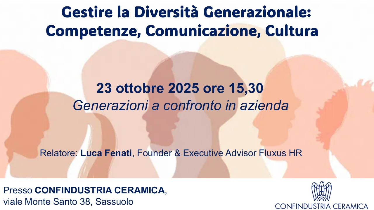 Vai alla lista eventi Evento Generazioni a confronto in Azienda Education e Formazione Questo contenuto è riservato agli associati Accedi Giovedì 23 ottobre p.v. ci sarà il primo dei tre incontri sul tema della diversità generazionale in Azienda per affrontare le sfide legate al dialogo tra età diverse nel mondo del lavoro. Informazioni Data 23 ottobre 2025 Ora Dalle 15.30 alle 17.30 Luogo Confindustria Ceramica Partecipazione Riservato agli associati Allegati 354_2025_Gestire_la_Diversità_Generazionale Link Modulo di iscrizione